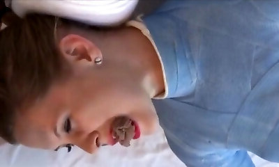 Teen slave girl Nora Riley has an climax with her legs and mitts tied