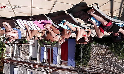 Summer Girls Group Sex with a bottle oil