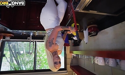 I Found an 18 Yr Older Girl Cooking in Cutoffs with her Huge Ass and I Stayed to Help Her