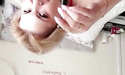 Blonde housewife gets drilled with a string on by a lesbi midget