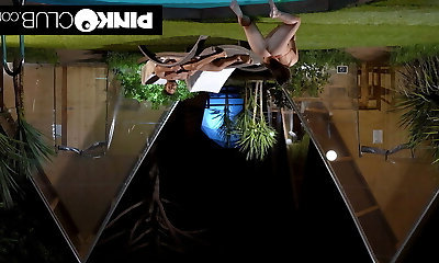 Two cristmass girl having sex beside pool