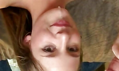 Cute slut takes dick in mouth, twat and bootie then jizzed on after sucking 2 dicks