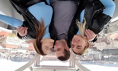 Two hot chicks and a guy in an intense threesome romp sesh