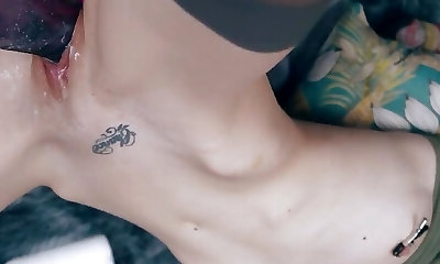 Big tit cheerleader gets ass torn up by giant demonic finger