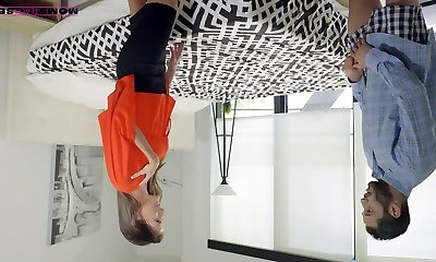 Fuck-a-thon-starved teen Kyler Quinn bangs her stepbrother under parent's nose