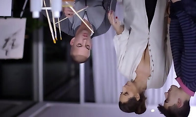 Office Three-way: Thin Brunette's Intense Plumb with Colleague and Boss
