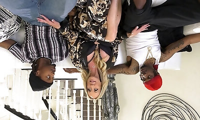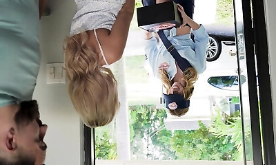 弯曲的金发女郎phat-战利品徐娘半老引诱一个大块头披萨的家伙进入一个热的3-一些