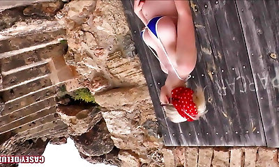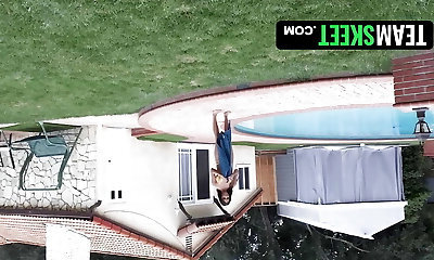 Kinky Becca Blossoms suck a man rod right near the pool