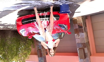 Sexy Blonde Slut With Big Tits Gives A Super-steamy Bikini Car Wash