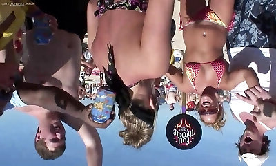 Charming honies in bikini casting their sexy globes partying wildly at the beach in reality shoot