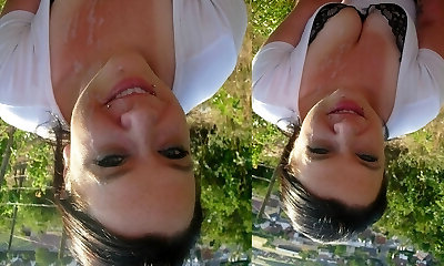 Hot brunette teen Maya Bijou rides yam-sized dick outdoor for jizm