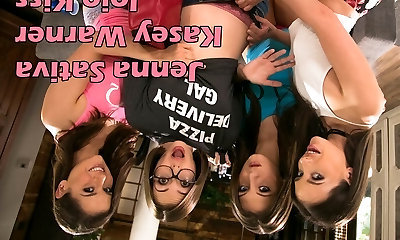 Pizza delivery girl joins to lesbian teenagers