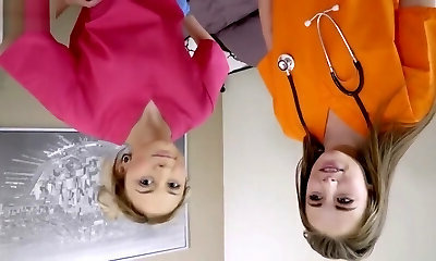 Insane doctor Angelica Heart pleasures her foxy nurse Arteya. HD