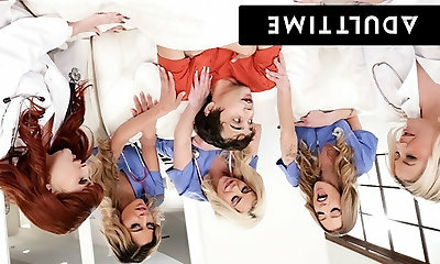 ADULT TIME - Big Titty MILF Physicians and Nurses Use REVERSE GANGBANG To Cure Cherry Patient!