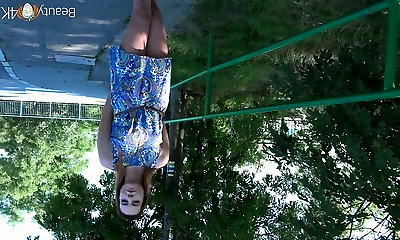 Sandy-haired Sexy Skinny Roxie Shows her Panties under her skirt