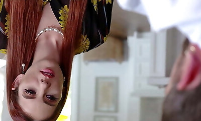 Pale redhead Lenina Crowne with hefty tits bangs a big cock on the kitchen table