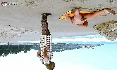 нимфа с ультра-симпатичными молочными банками на пляже видео скрытой камеры испании